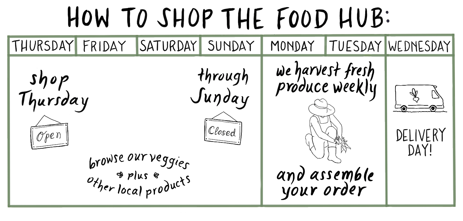 If you're a farmer, rancher, or food maker in the region, and are interested in selling your products on the food hub, please get in touch.